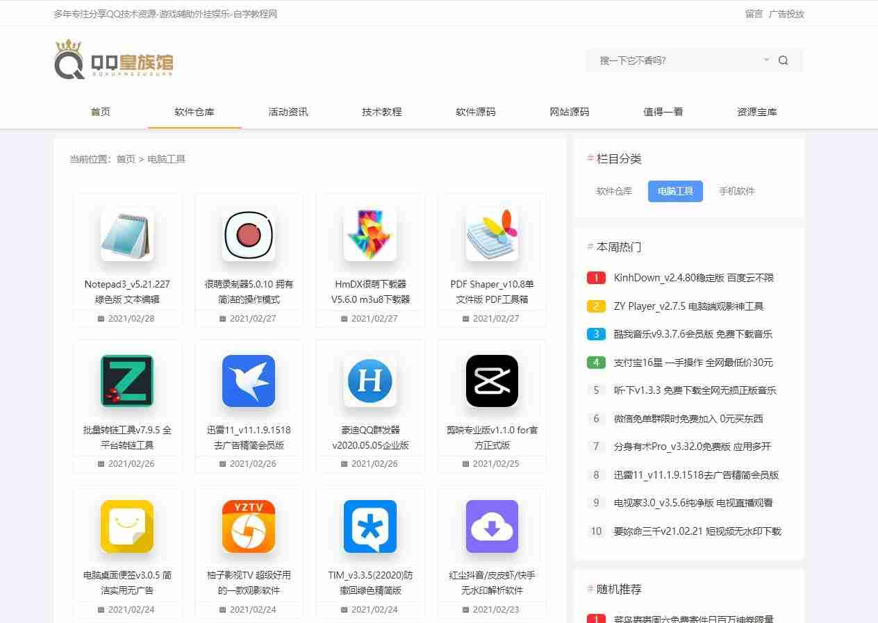 Emlog资源资讯模板,QQ皇族馆同款 自带技术导航功能